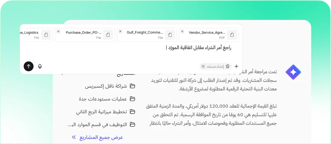 رقمنة المناقصات وتأهيل الموردين والموافقات على العقود من خلال سير عمل شفاف وموحد يقلل من وقت المعالجة والأخطاء اليدوية.