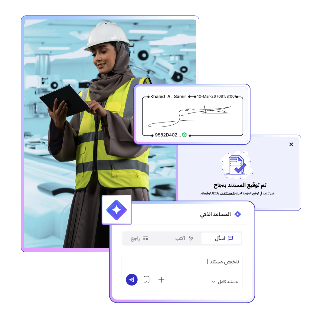 استخدام التوقيعات الرقمية والتوجيه الآلي للقضاء على الاختناقات في موافقات الموردين والامتثال. ضمان أن كل اتفاقية ملزمة قانونياً ومرخصة من هيئة الحكومة الرقمية.