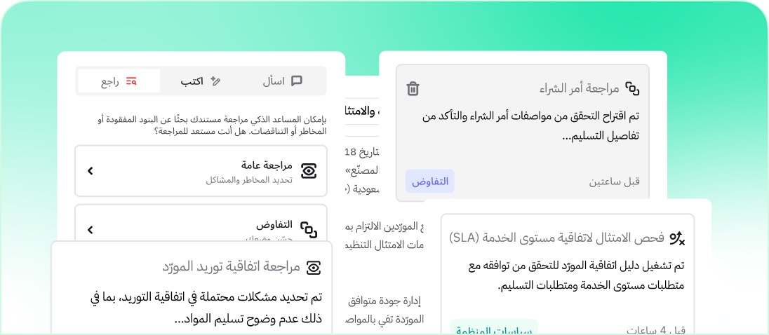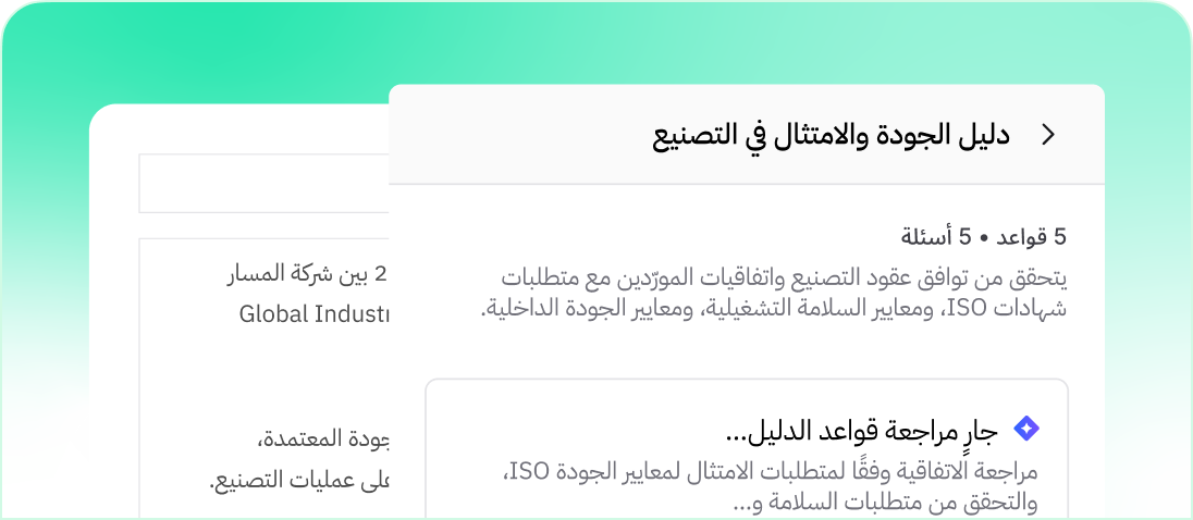 توحيد القوالب والبنود لمعايير السلامة وISO وامتثال الموردين — مع مسارات تدقيق تثبت الالتزام في كل خطوة.