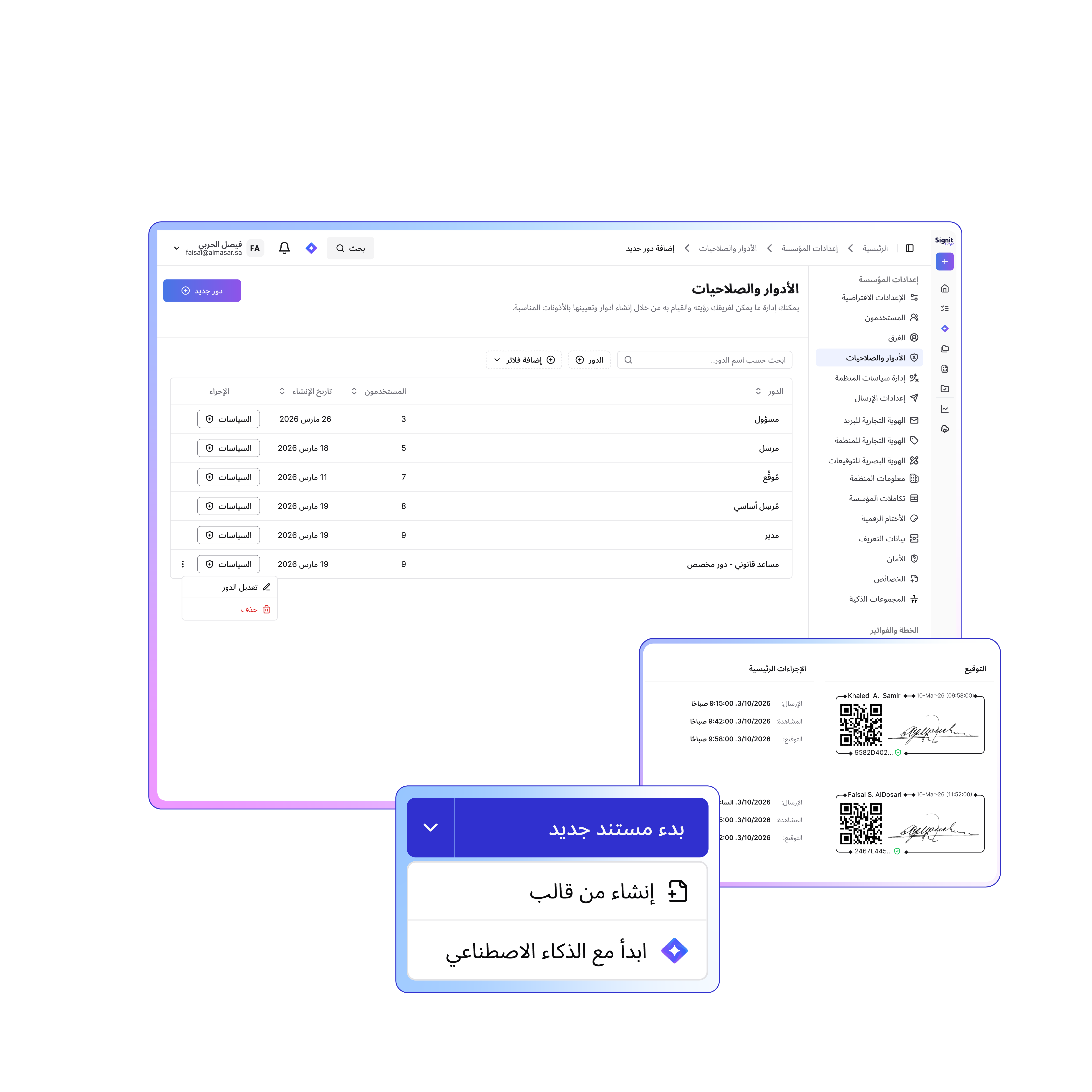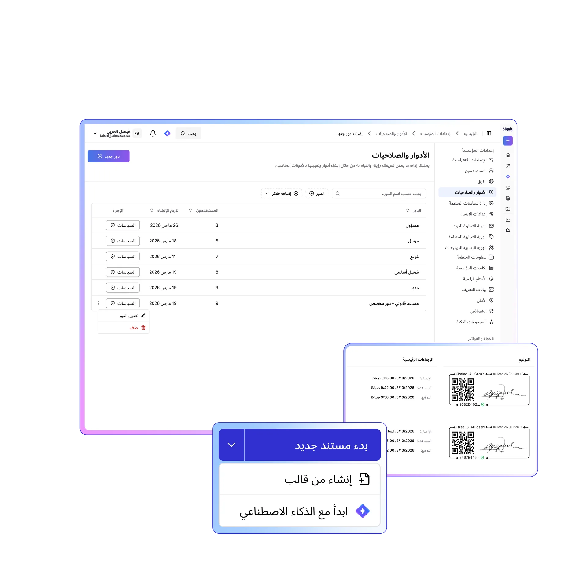 أتمتة إقرارات السياسة، وموافقات التدقيق، والإيداعات التنظيمية باستخدام توقيعات رقمية موثقة ومختومة بموجب معايير هيئة الحكومة الرقمية (DGA) و PDPL السعودية.