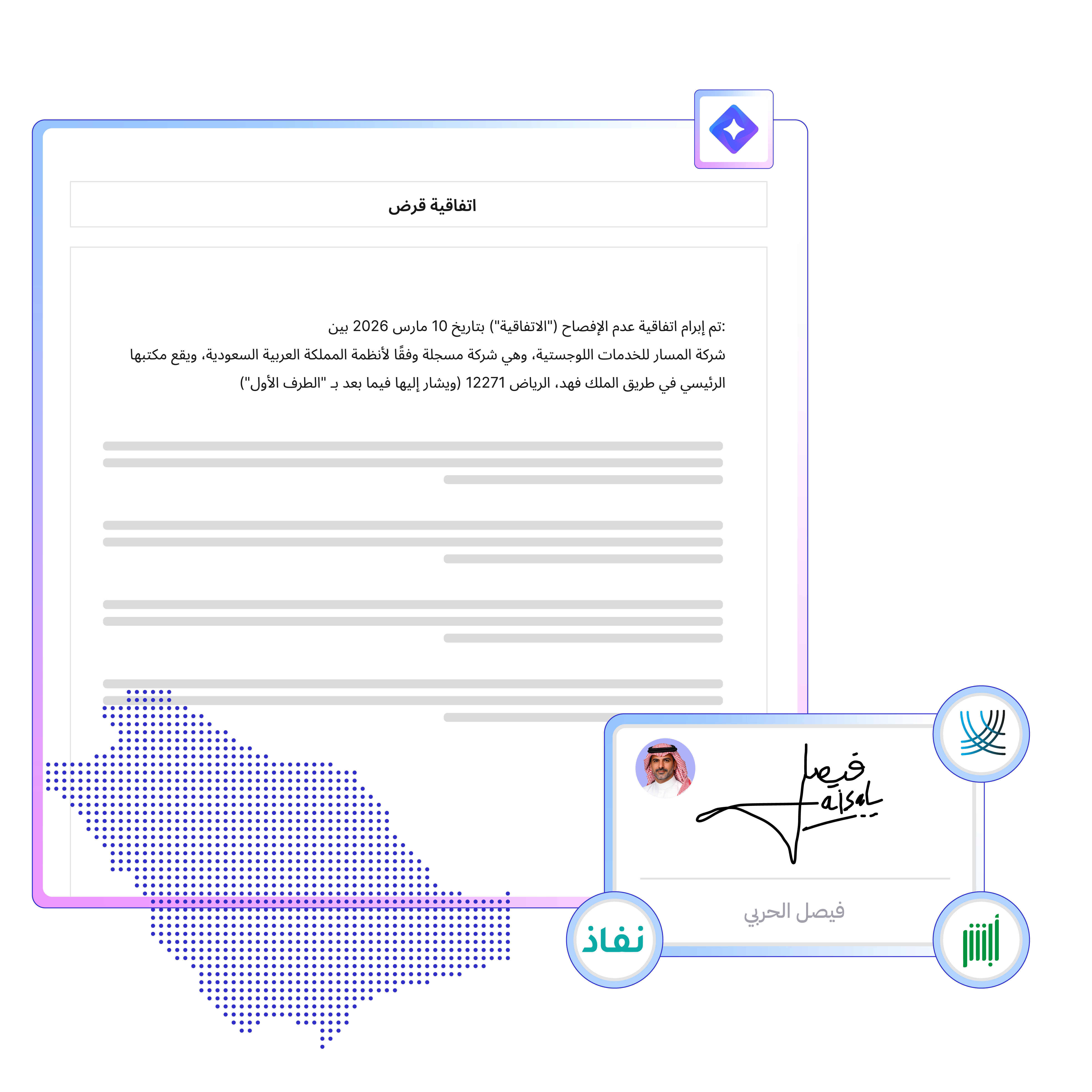 امنح فريقك القانوني الأدوات اللازمة لإدارة العقود واتفاقيات عدم الإفشاء والقرارات بشكل أسرع - مع مسارات تدقيق مقاومة للتلاعب، وأختام رقمية، وبيانات مستضافة بأمان داخل المملكة.