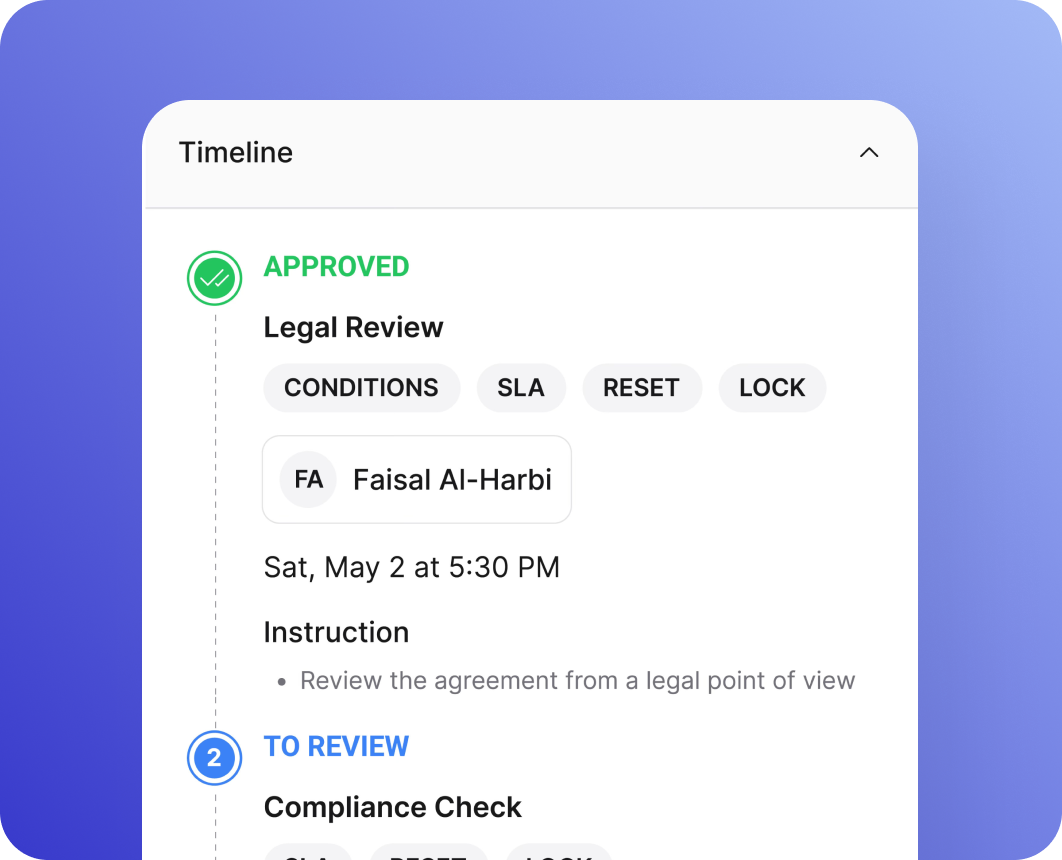 - Auto-route approvals based on contract type, value, or department