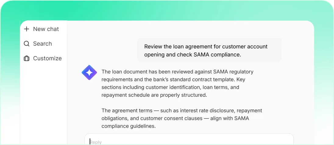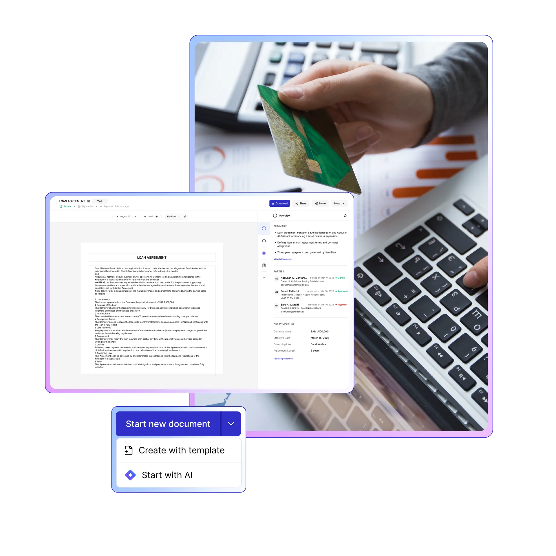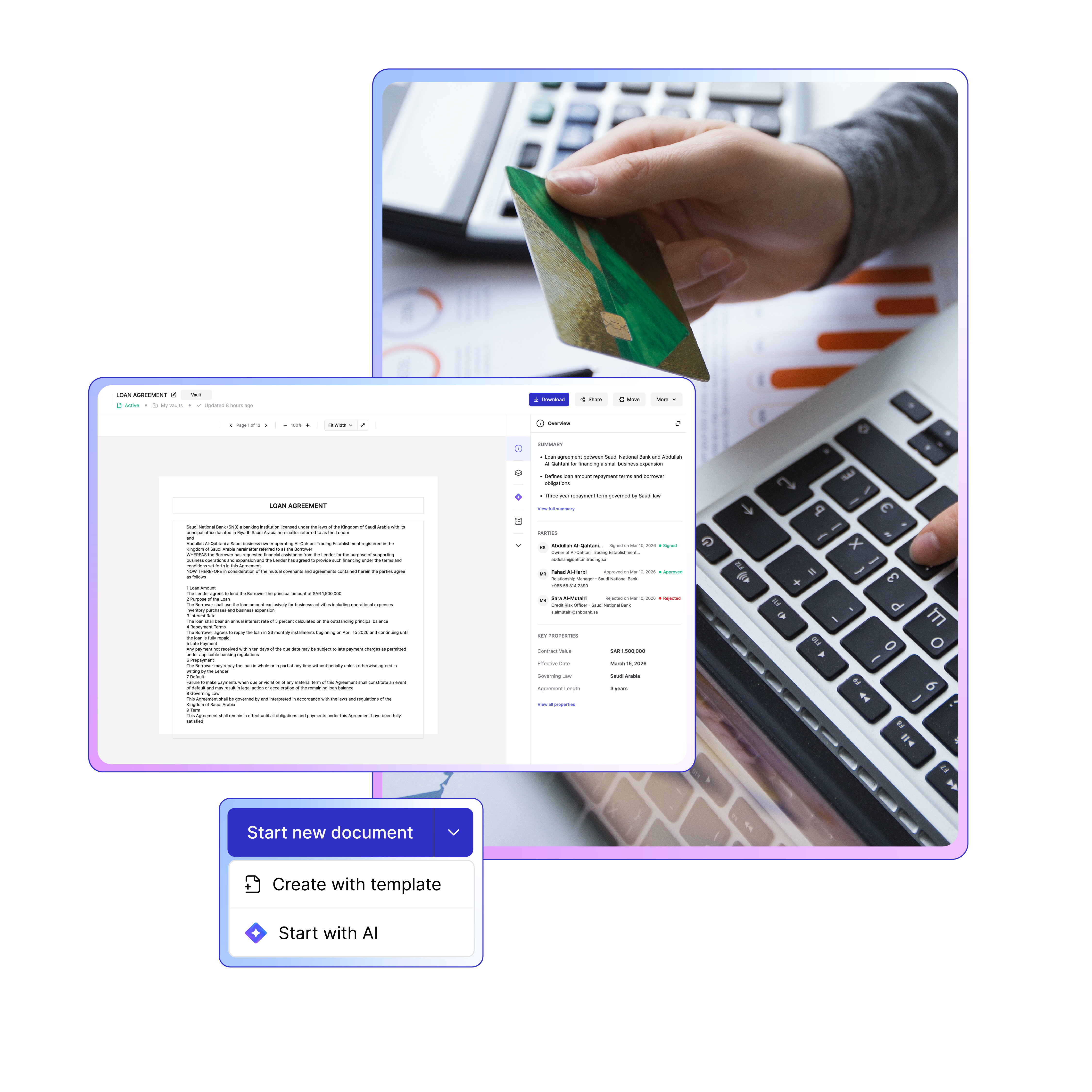 Manage customer, vendor, and regulatory agreements with workflows aligned to SAMA and internal audit standards.
