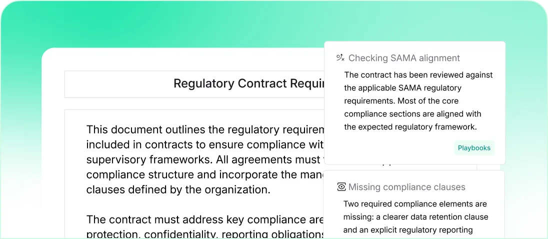 AI-powered reviews flag non-standard terms, missing clauses, and compliance gaps before approval — reducing exposure and supporting proactive risk oversight.