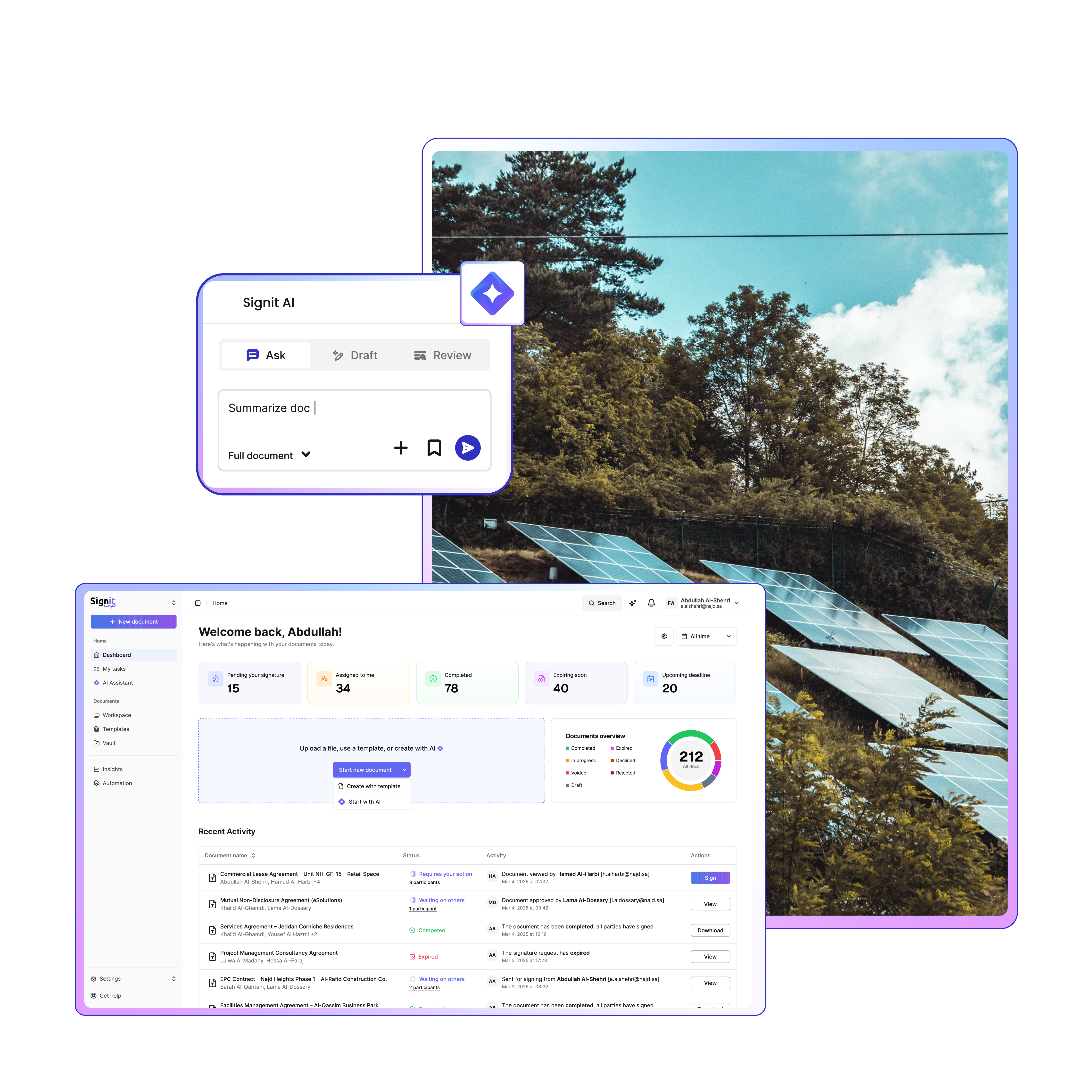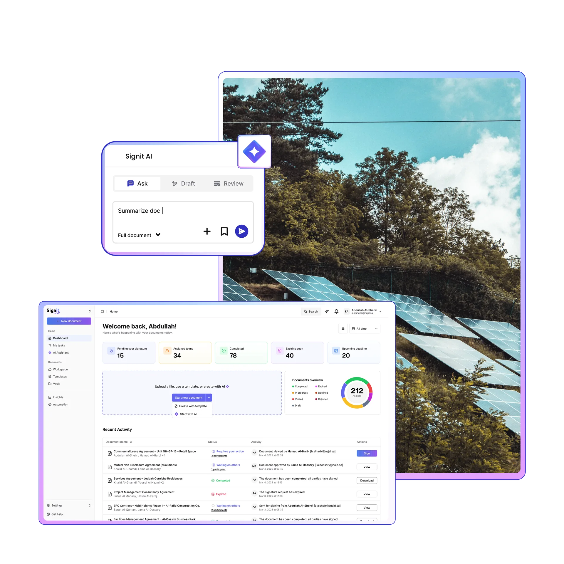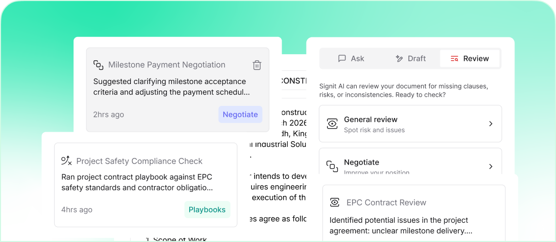 Empower your procurement, legal, and operations teams to manage every contract — from supply to safety — in one compliant, Saudi-hosted platform. Signit helps energy and utilities leaders move faster while maintaining full visibility and control.