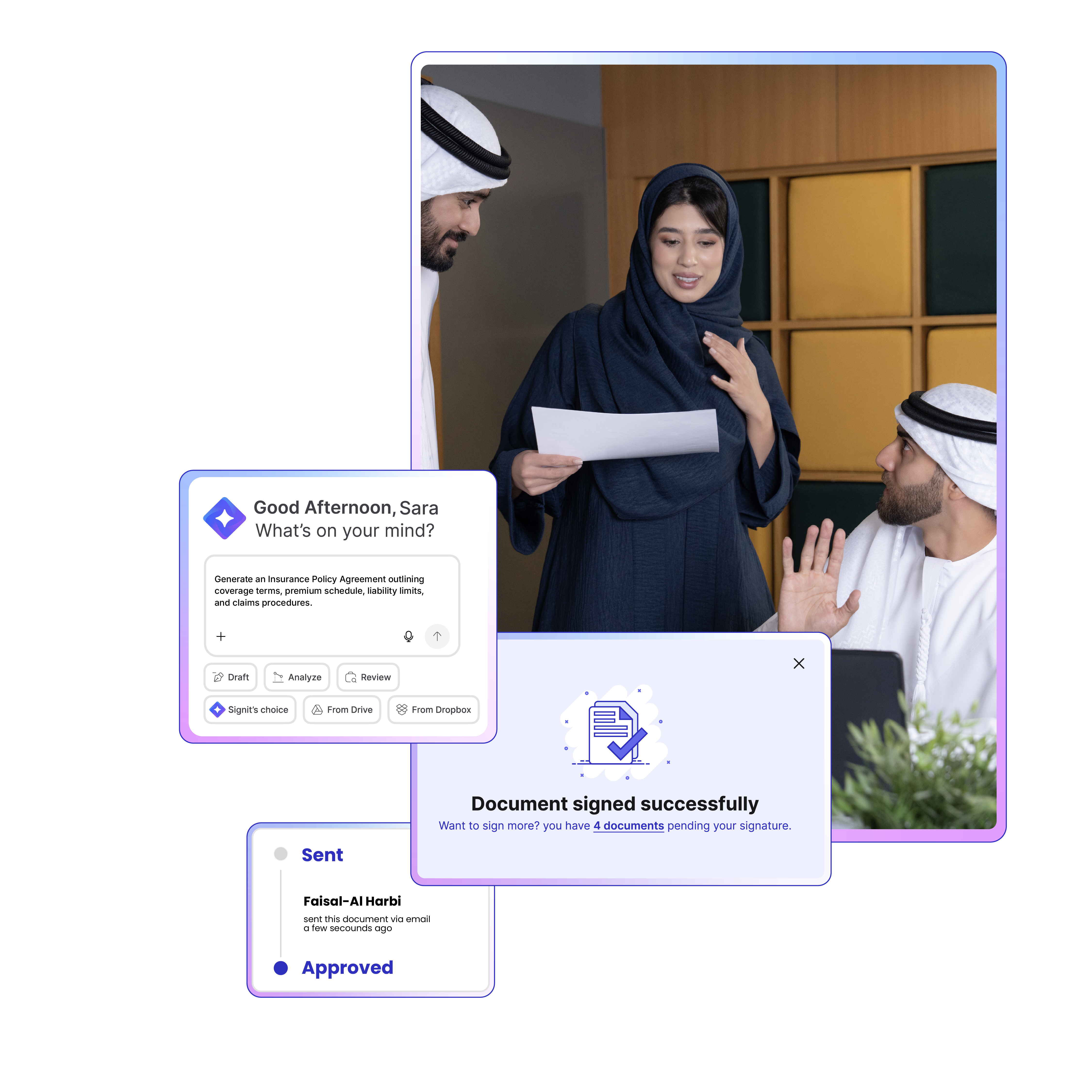 Empower your insurance teams to draft, sign, and manage every agreement securely — from policies to partner contracts — with full Saudi compliance and legally binding e-signatures.