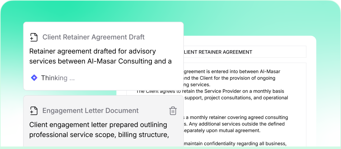 Leverage AI to generate first drafts, suggest clause alternatives, and flag risky language — saving hours on routine legal work.