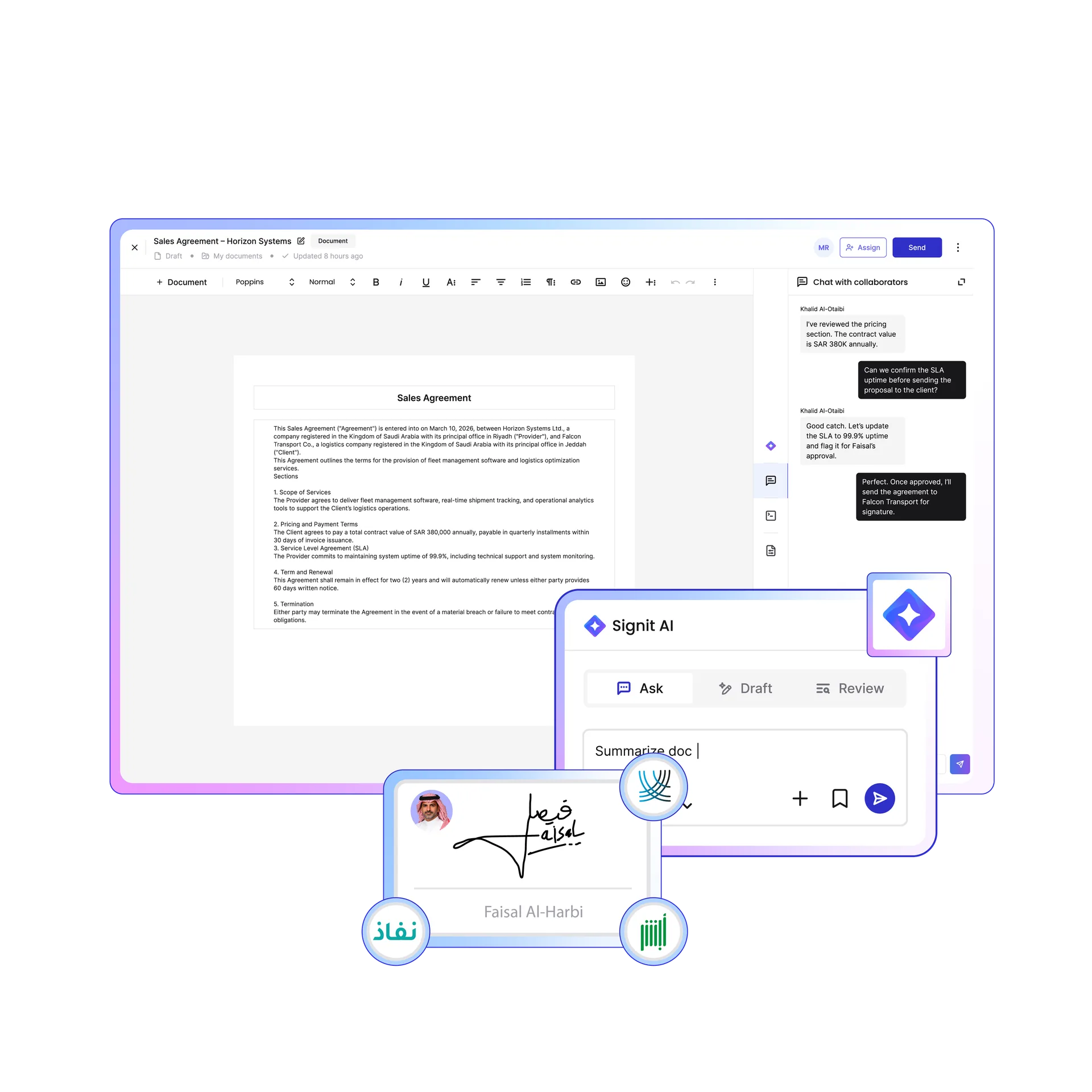 Empower your reps to create, negotiate, and sign faster and smarter — with AI-driven workflows, real-time insights, and Saudi-grade compliance built in.